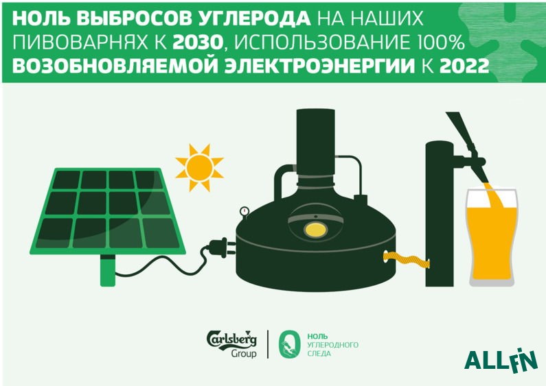 Carlsberg планирует на 50% сократить потерю воды на своих заводах и использовать электричество из возобновляемых источников, а также свести выброс углекислого газа к нулю.